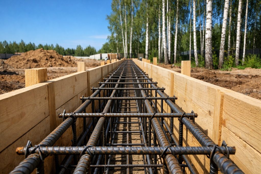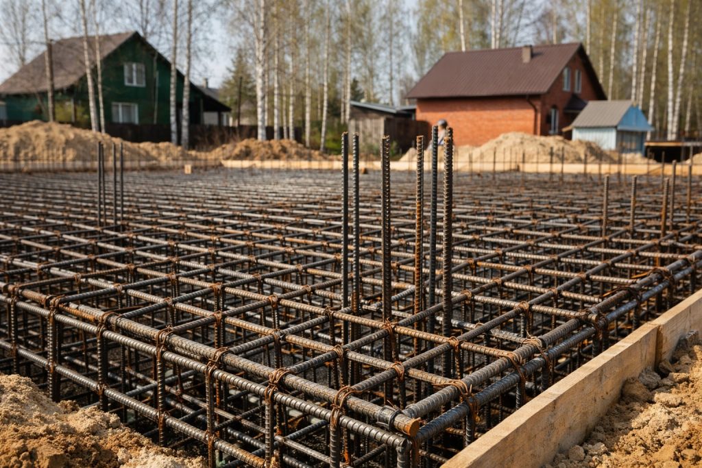 На нормальных грунтах с хорошей несущей способностью требования к армированию мягче. Но не стоит на этом экономить: строение стоит десятилетиями, а переделывать фундамент — разорение.