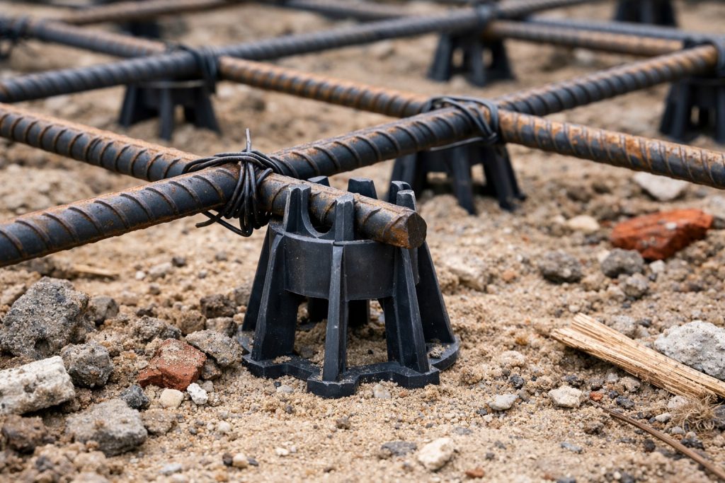 - Укладка арматуры прямо на грунт или опалубку без фиксаторов. Каркас смещается при заливке бетона, защитного слоя нет — через 3–5 лет ржавчина.