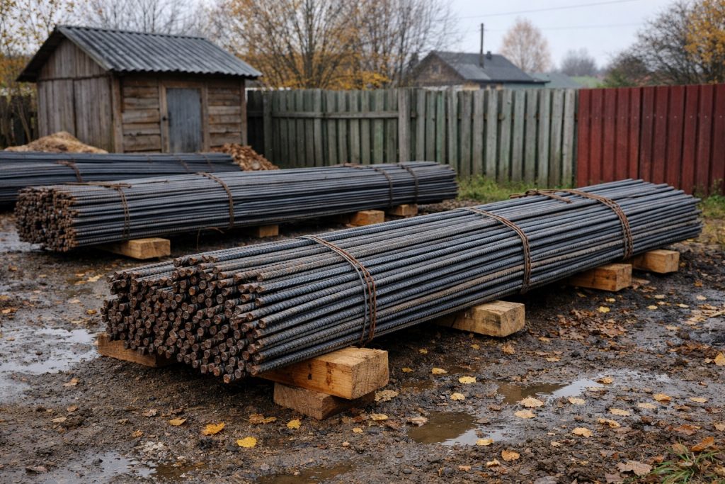 Правильное хранение арматуры — не мелочь. Металл, пролежавший несколько месяцев на улице в мокрой траве, теряет часть несущей способности, а на его поверхности образуется толстый слой ржавчины.